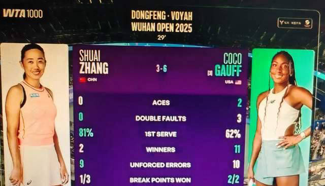 最终,36岁的中国金花张帅在两盘比赛中未能创造奇迹,连输两盘不敌第三种子高芙。